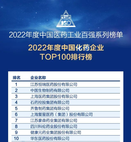佳音频传!永利皇宫官网医药再次蝉联中国化药企业百强榜首